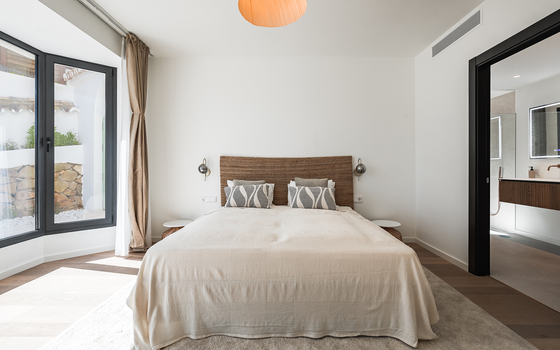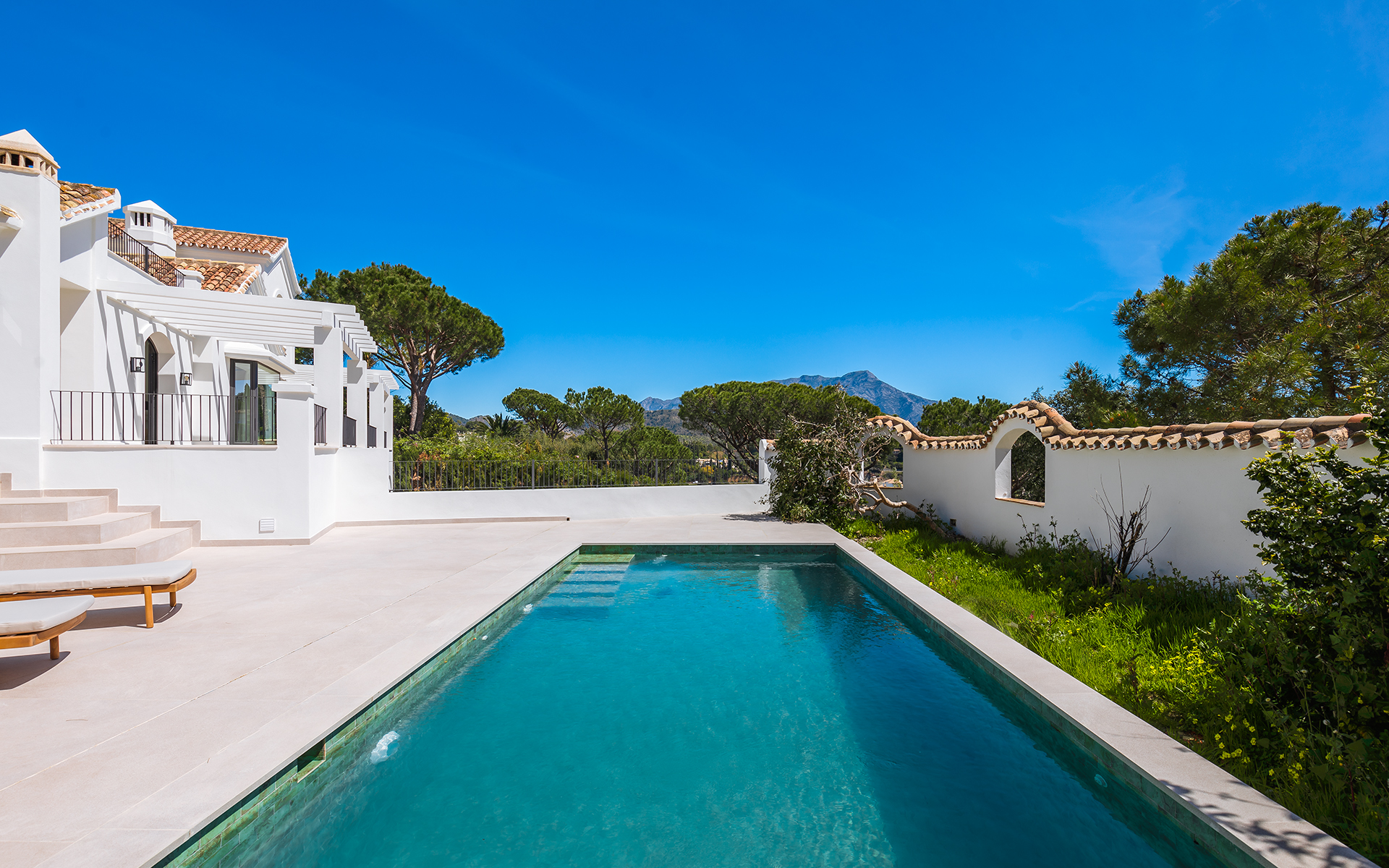 Villa Esencia is situated in El Madroñal 2, Benahavís. It is approximately 8 km from San Pedro de Alcántara, 12 km from Puerto Banús, and 18 km from Marbella. Access to the AP-7 motorway is swift, providing connections to Malaga and the airport. The natural environment encourages enjoyment of the Sierra de las Nieves Natural Park and golf courses such as Los Arqueros and La Quinta. Nearby, one can find shops, restaurants, and educational institutions like Atalaya International School. Additionally, there are prominent medical facilities such as Hospiten Estepona.