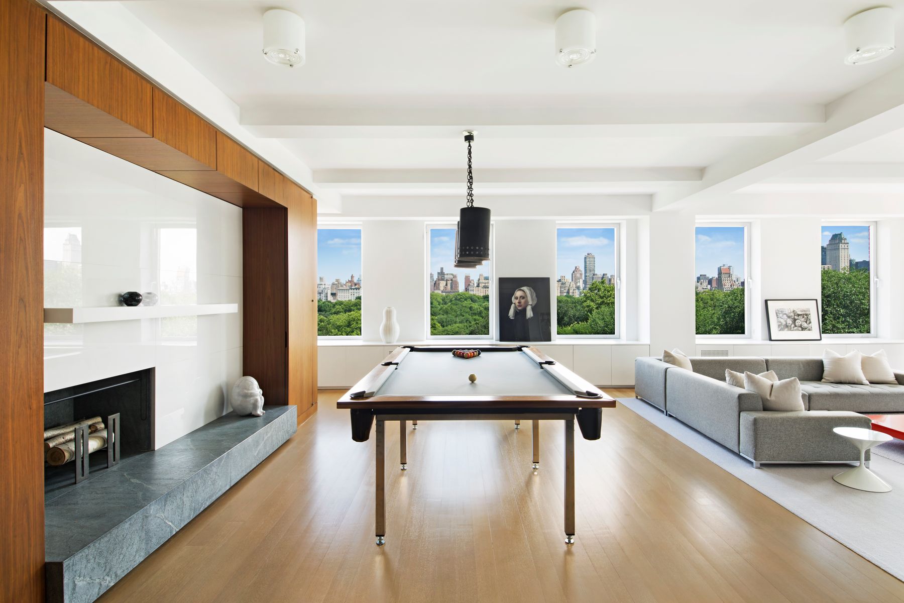 This remarkable high-floor apartment has been flawlessly renovated by the internationally acclaimed architecture firm Shelton, Mindel & Associates, presenting a unique opportunity to acquire one of the largest and most sought-after residences on Central Park. Featuring an impressive 100 linear feet directly facing the Park, the sequence of entertaining spaces includes a striking living room with a wood-burning fireplace, a delightful dining room, and a sun-drenched corner library that offers beautiful southern views. These areas are enhanced by 14 large single-pane windows that bathe the apartment in eastern light. A powder room and several closets are conveniently located nearby.
