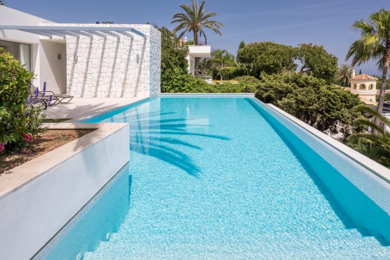Inspired by art, designed to live. This luxury 5-bedroom modern house for sale is located on the east side of Marbella, one of the most sought after parts of the Costa del Sol. The perfect opportunity to acquire your very own high-end beachside, ultra-modern home!
