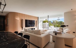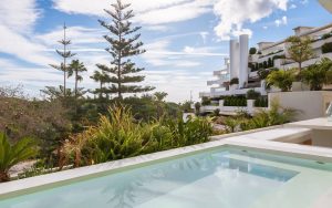 A breathtaking, single-level apartment that has been entirely renovated to the highest specifications, crafted by the esteemed architect Fernando Higueras. Located within a secure gated community featuring 24-hour security in Las Lomas del Marbella Club, right at the center of the Golden Mile.