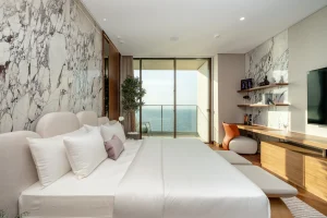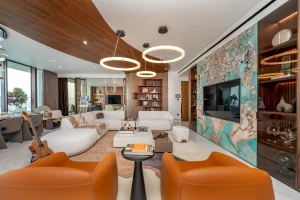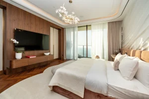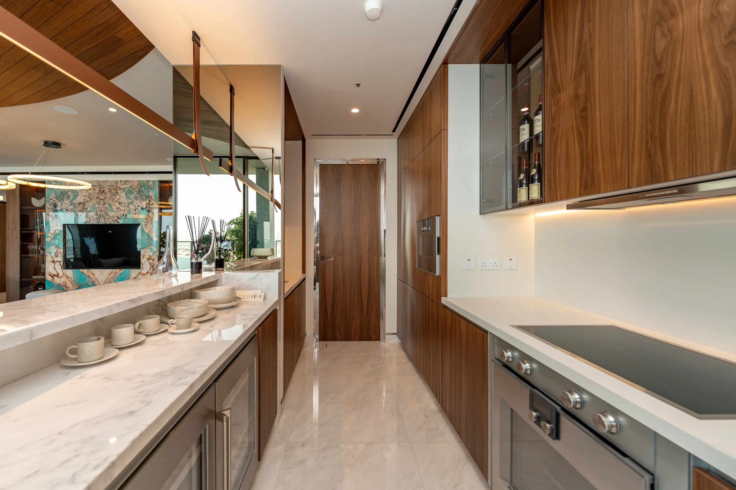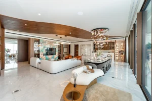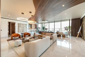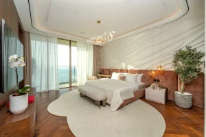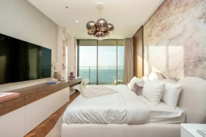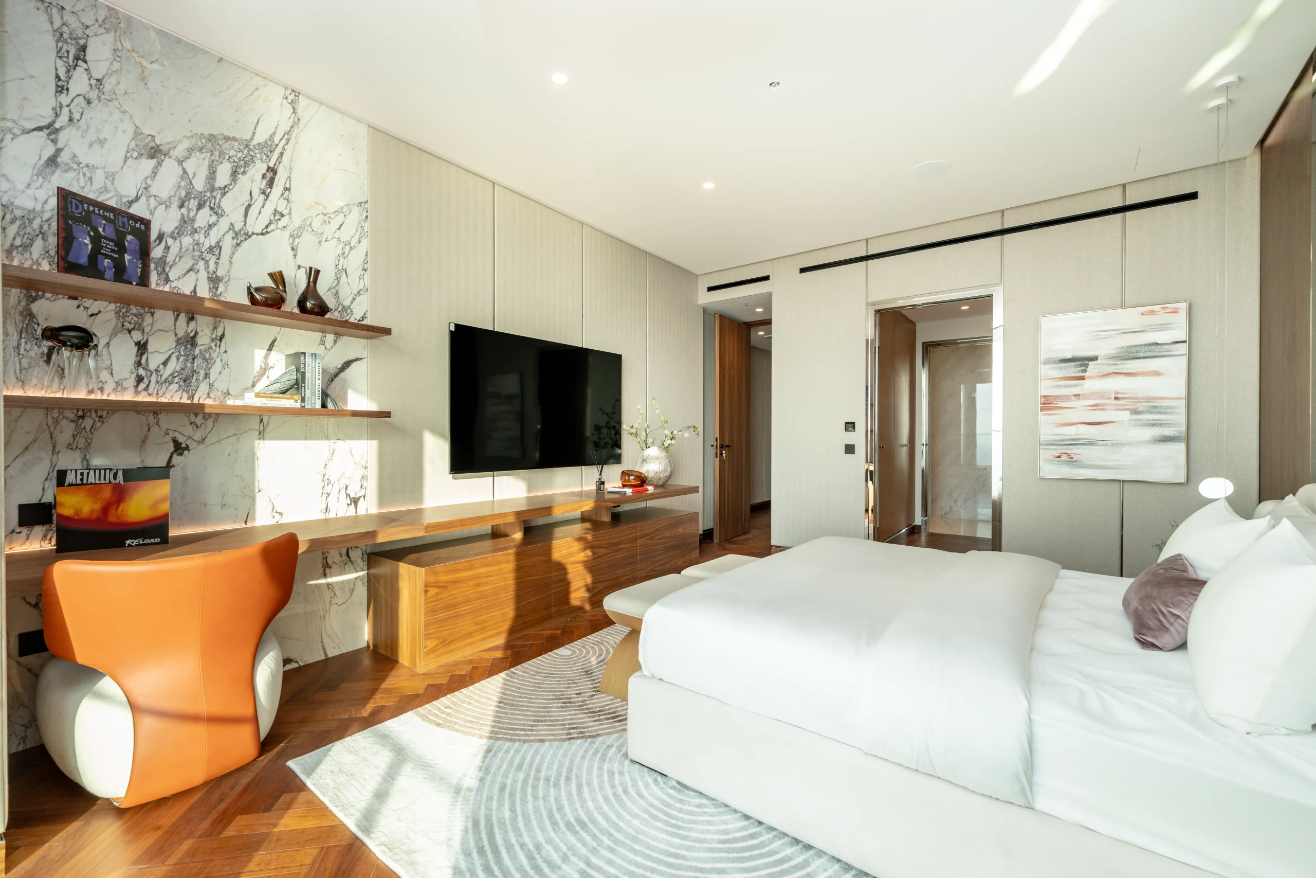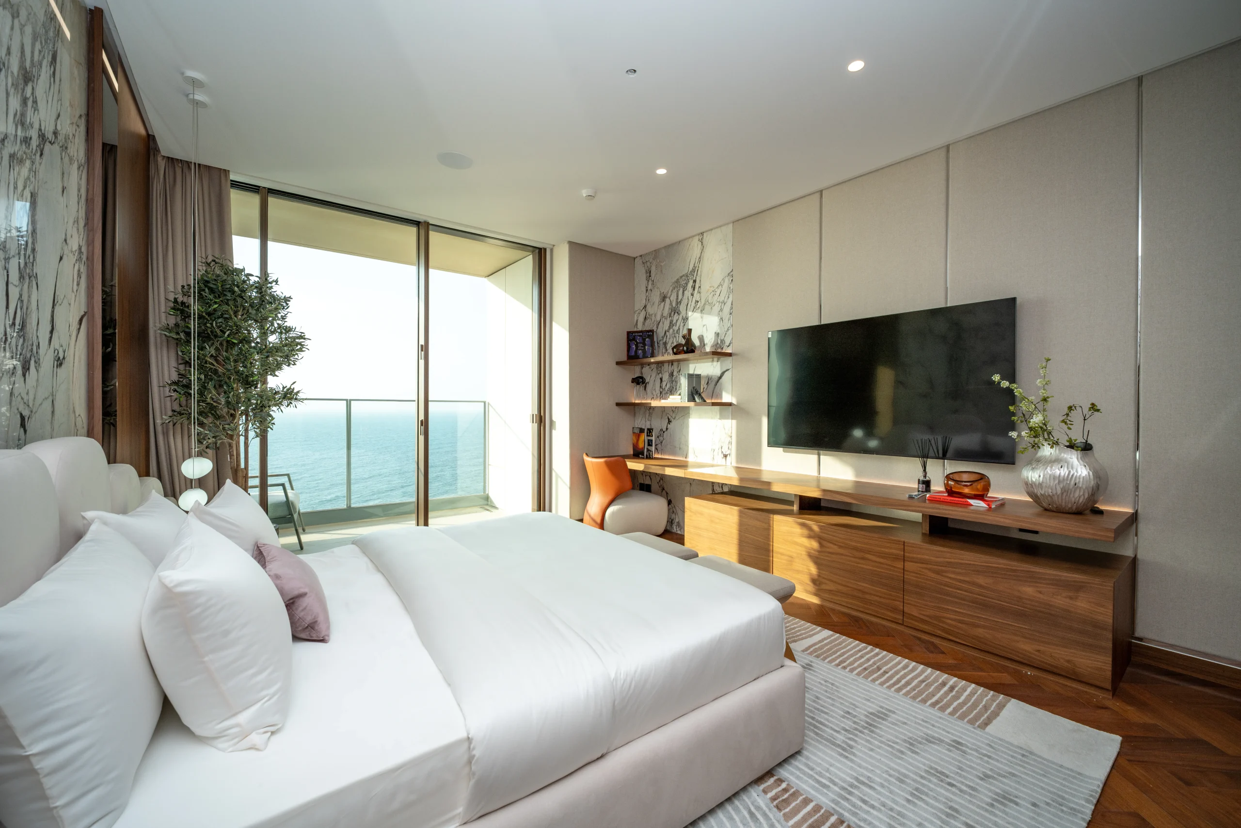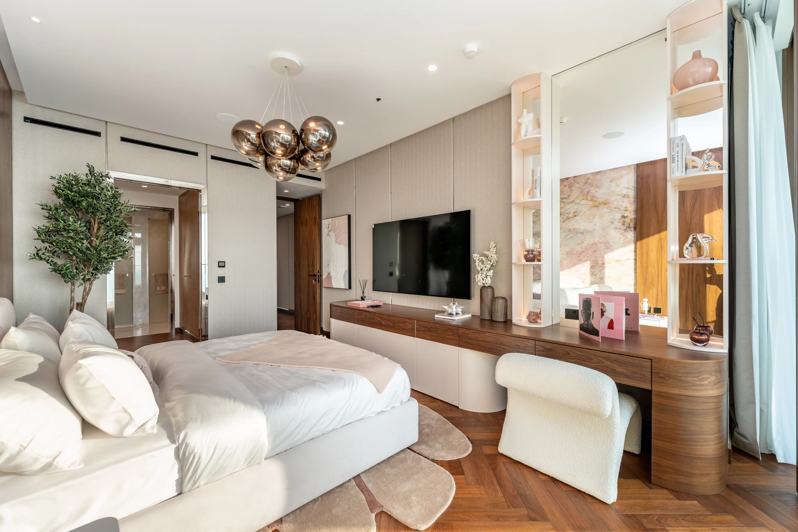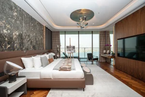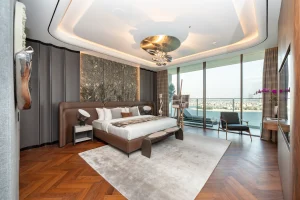 Inside, the design balances bold modernity with refined touches: state-of-the-art appliances, curated art, and lighting that accentuates the volume and flow of each room. Service is discreet yet attentive, ensuring every whim is anticipated. In this pinnacle of residential luxury, the Grand Penthouse represents more than living space—it embodies a statement, a lifestyle, a dream made concrete in the sky.