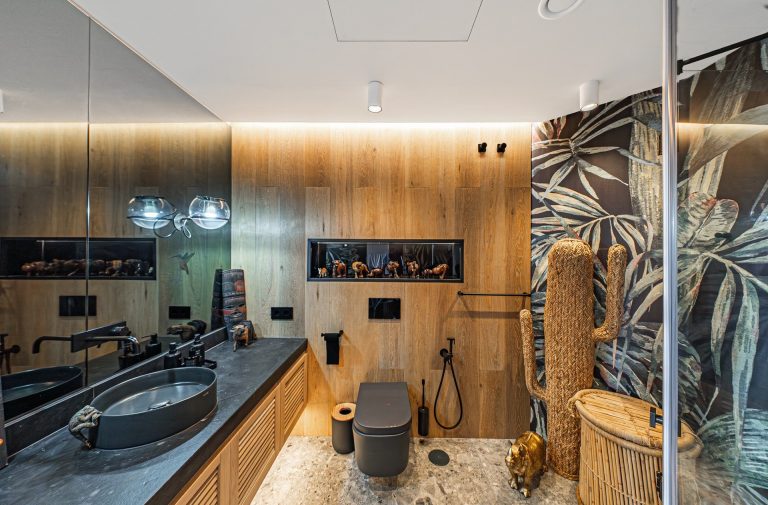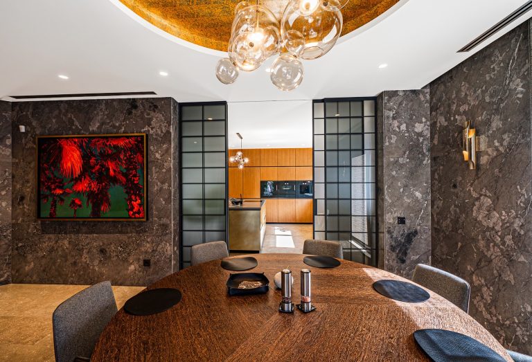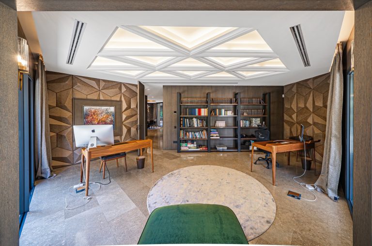 The villa is set in a privileged location, enveloped by natural landscapes and offering panoramic views of the golf course, ensuring a serene experience within an exclusive environment. The expansive outdoor spaces are designed for year-round enjoyment, featuring areas perfect for relaxation or entertaining guests in a refined setting. The meticulously maintained garden and private swimming pool are just a few of the amenities that provide the utmost privacy and comfort.INTERIOR