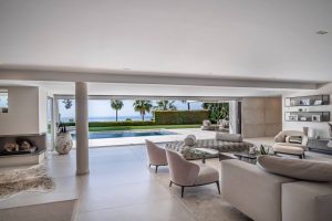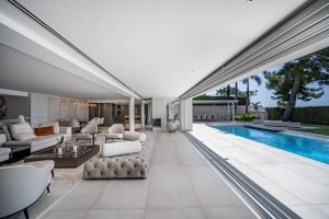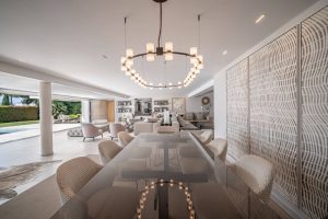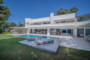 Stunning modern-style home for sale set in the gated community of Altos Reales, on the upper side of the Marbella Golden Mile, offering amazing sea views with complete privacy and surrounded by lush gardens next to Marbella center. Nestled just above the Golden Mile boulevard, in the exclusive community of Altos Reales, this property offers incredible jetliner sea views, a scenic mountain backdrop and luxury living in one of Marbella’s most sought-after neighbourhoods. Surrounded by a 12,000m2 of mature gardens, a tennis court, along with one of the best security systems with 24/7 security guards, night patrols, and CCTV cameras surrounding the complex. This recently remodeled villa features an expansive pool surrounded by a lush mature garden, with an open floor plan ideal for dining al fresco and entertaining.