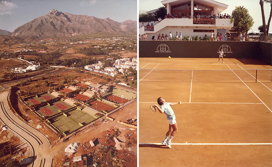 Simultaneously, the Hotel Puente Romano opened its doors in 1979, coinciding with the launch of the tennis club. This development introduced a new era of sophistication and elegance to Marbella’s Golden Mile. Reflecting the club’s dedication to excellence, the hotel rapidly became a hallmark of luxury and a favored destination for the elite, playing a crucial role in enhancing the region’s reputation as a premier tourist and sporting locale.